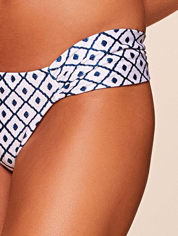 Tanga lateral larga estampado com recortes franzidas por meio de tecidos duplos drapeados e aviamento de Metal no Banho de Ouro Velho nas costas. Tecido: Microfibra Beach Estampa: Ocean Coleção: Verão 25 Disponível nos tamanhos: P, M, G e G Referência: 17447